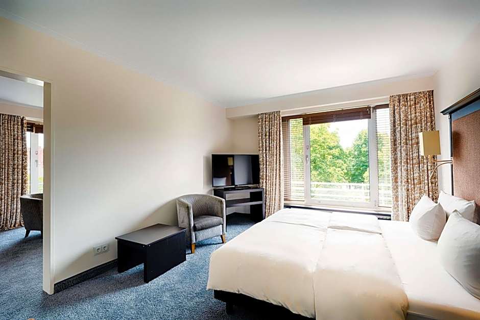 When you stay at the Radisson Blu Senator Hotel, you can enjoy a range of amenities to make your stay comfortable and enjoyable. Take a dip in the indoor swimming pool or unwind in the sauna, both of which are free to use. The hotel also offers free Wi-Fi, air conditioning, and a 24-hour front desk. For dining options, guests can choose from the on-site restaurant or enjoy room service. And don't forget to start your day off right with a delicious breakfast, included with your stay.